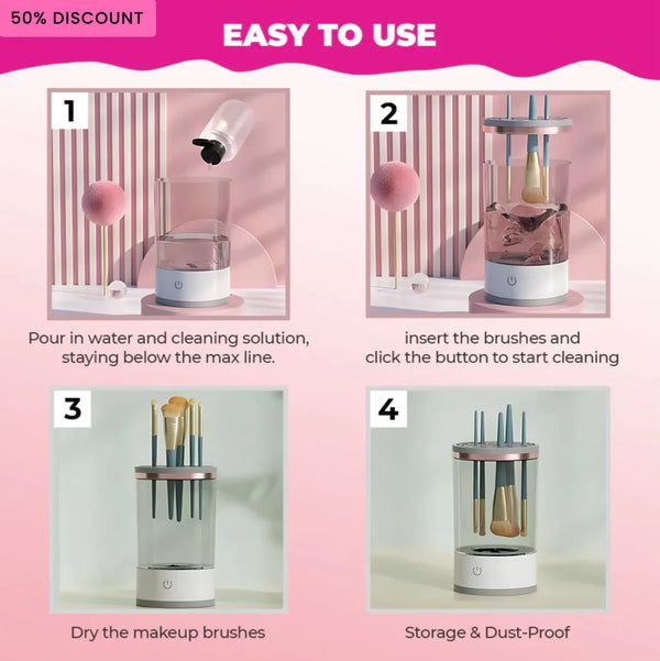 Say goodbye to long drying times. The Makeup Brush Washer features a quick-drying function, allowing you to use your brushes shortly after cleaning. No more waiting around for brushes to air-dry.