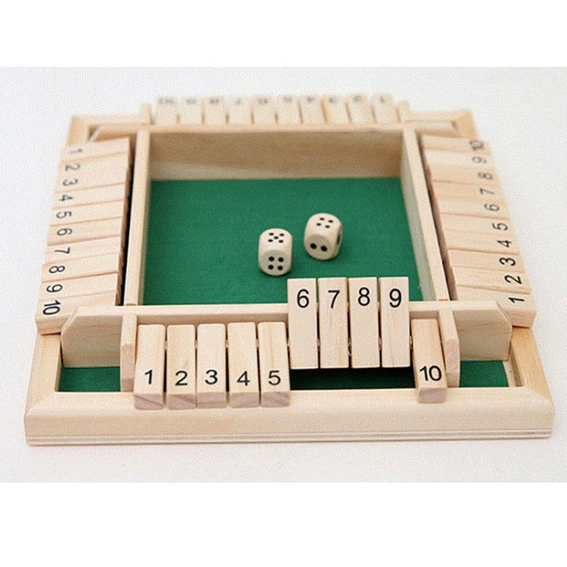 One Flip-n-Count game with 10 silk-screen printed numbered tiles and dice, all packaged in a durable, easy-to-store wooden design.