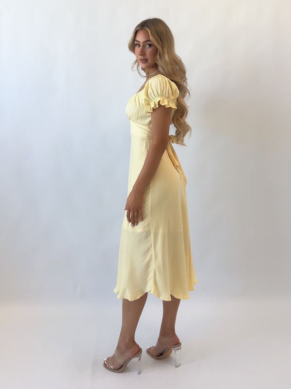 The Ellison Midi Dress can be styled in numerous ways to suit your individual taste and the occasion. Pair it with heels and statement jewelry for a sophisticated look, or dress it down with sandals and a denim jacket for a more casual vibe.