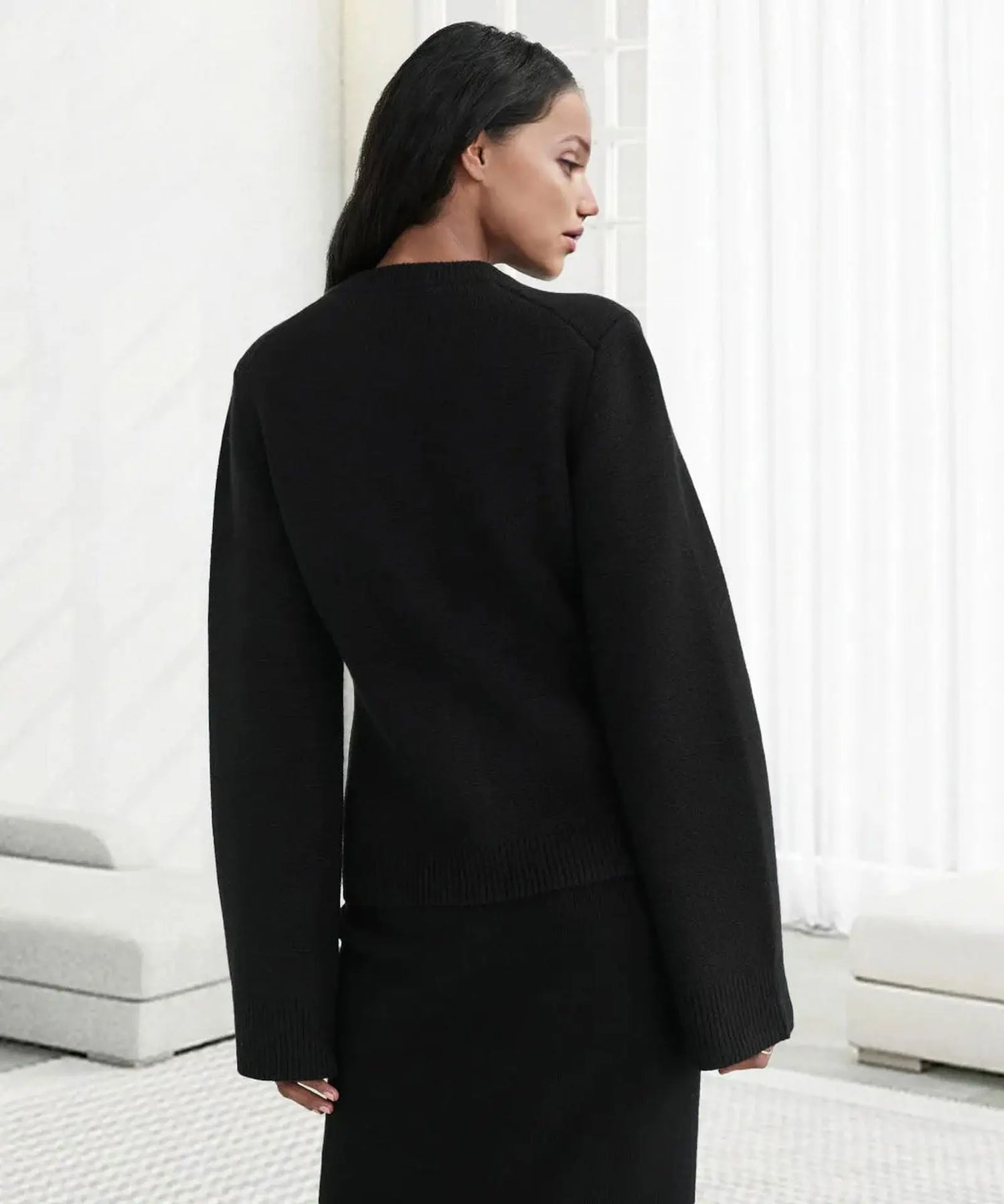 A: The cardigan is crafted from a blend of high-quality materials chosen for their softness, ensuring a luxurious feel against the skin.