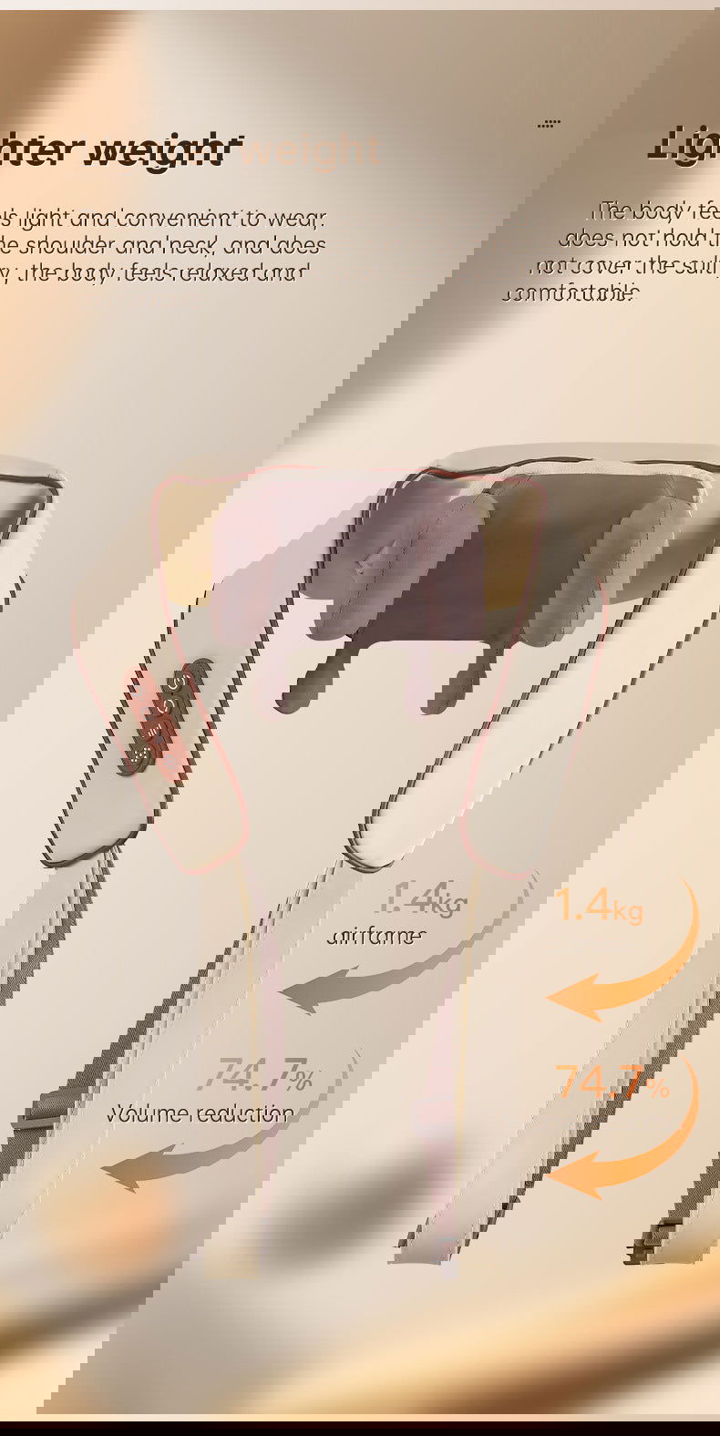 • Heat and Vibration Therapy: Relieve tension with soothing heat and vibration therapy for the neck and shoulders.