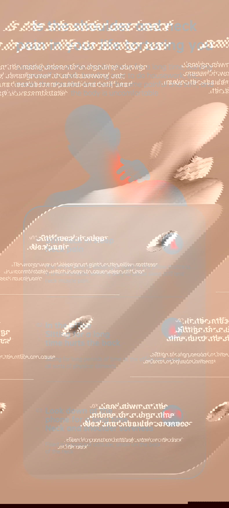 Introducing the SootheEase™️ Neck and Shoulder Massager – your solution to neck pain, stiffness, and fatigue. Enjoy a relaxing massage anytime, anywhere with this wireless, rechargeable, and portable device. Designed to fit your neck comfortably, the SootheEase™️ Neck and Shoulder Massager provides soothing heat and vibration therapy, helping relieve tension, improve blood circulation, and promote healing.